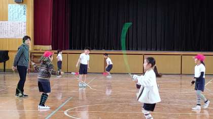 3時間目、2年生が講堂で体育の学習をしていました。「縄跳び」をしていました。二重跳びにチャレンジしていました。