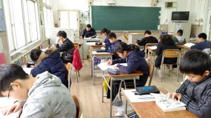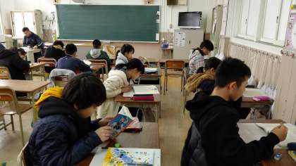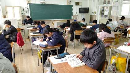 5時間目、6年生が国語の学習をしていました。「国語のテスト」問題に取り組んでいました。終わった人は、読書をしています。
