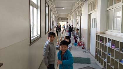 お昼休みに、毎日全員で清掃しています。