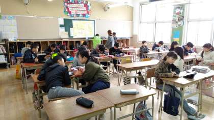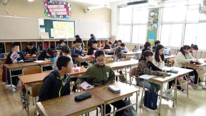 今日は、松吉先生がお休みですので、山本征一郎先生が代わりに、朝の会と1時間目の国語を担当しています。