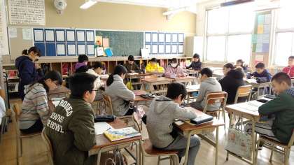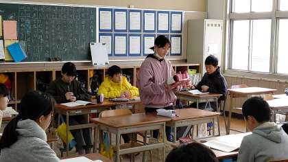 1時間目、6年生が国語の学習をしていました。自分が選んだ「いにしえの言葉」から、今までの生活を思い出して書いた文章を発表していました。