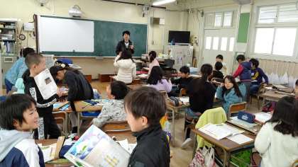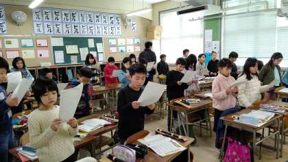 3時間目、3年生が音楽の学習をしていました。「パフ」を学習していました。