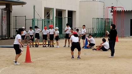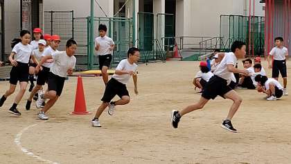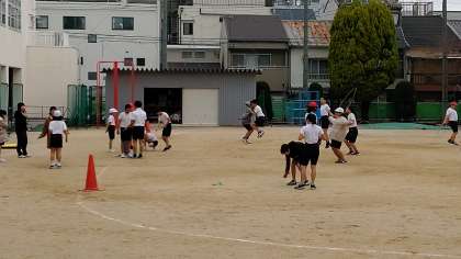 4時間目、5年生が体育の学習をしていました。「長距離走」と「縄跳び」をしていました。