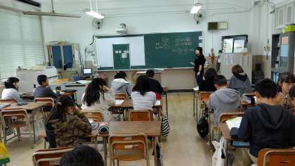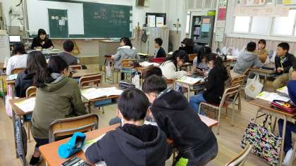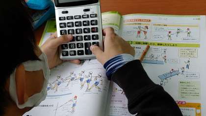 5時間目、5年生体育の学習をしていました。「走り高跳び」の目標値を、自分の身長と50m走から計算していました。