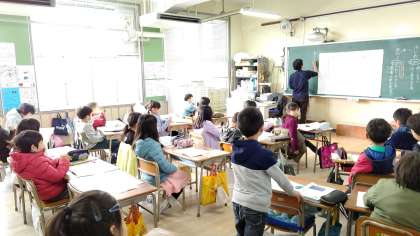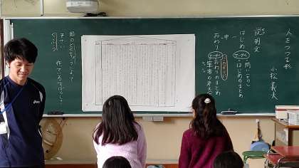 1時間目、3年生が国語の学習をしていました。小松義夫さんの説明文「人をつつむ形」を学習していました。