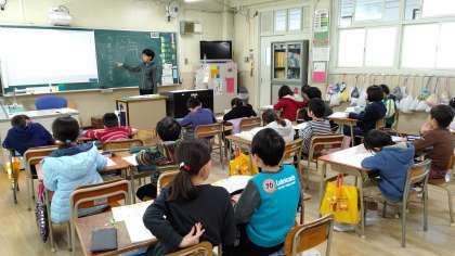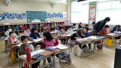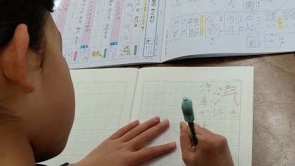 2時間目、2年生が国語の学習をしていました。漢字「汽」を学習していました。そのあと、「はんたいの いみの ことば」を学習していました。