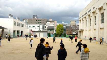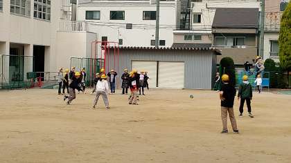 今日は、4年生から6年生までの児童が、運動場で遊んでいます。