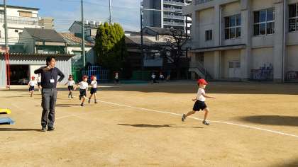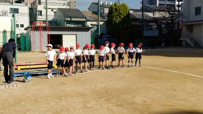 2時間目、1年生が体育の学習をしていました。「5分間走」と「縄跳び」をしていました。