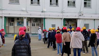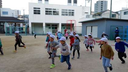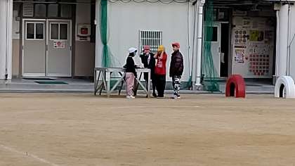 集会委員が、中心になり「増え鬼」をしていました。最後に担任の先生が「鬼」になって、児童が逃げていました。