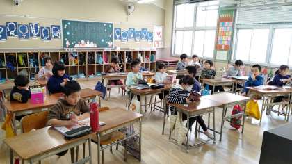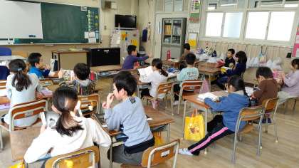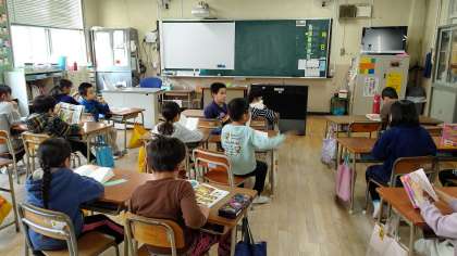 2年生が朝の学級活動で、読書活動をしていました。