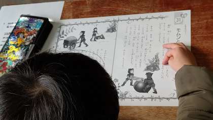 5時間目、1年生が道徳の学習をしていました。友だちってどんな人か考えていました。「モムンとヘーテ」という物語を読んで、さらに考えを深めていました。