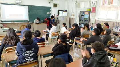 3時間目、5年生がタブレットを使って、各委員会の活動を報告していました。