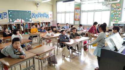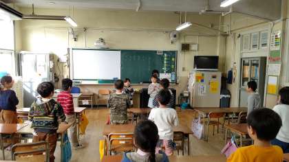 1時間目、2年生が 「おたのしみ会」をしています。