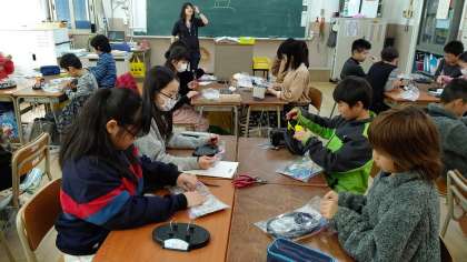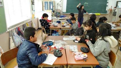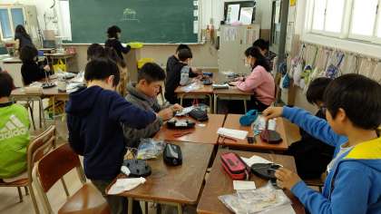 5時間目、5年生が今日の宿題と明日の連絡を連絡帳に書いて、担任の先生に提出したあと、5年生が図工の学習をしていました。針金を使って、造形物を作っています。