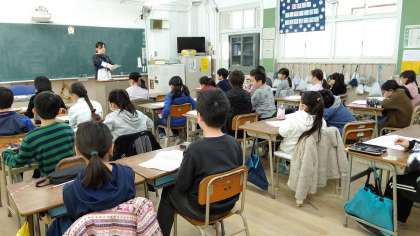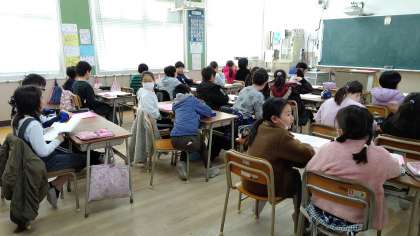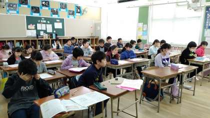2時間目、4年生が社会科の学習のあと、歌の練習をしています。