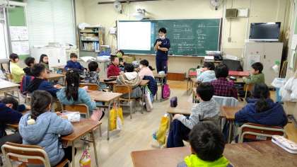4時間目、3年生が今日は運動場と講堂が、使えないので体育の学習を道徳の学習に変更していました。