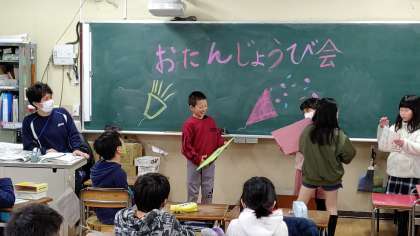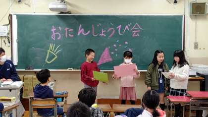 6時間目、3年生がお誕生日会をしていました。