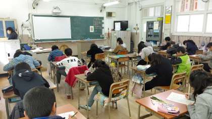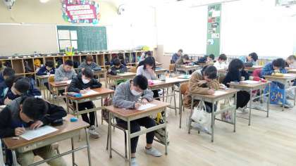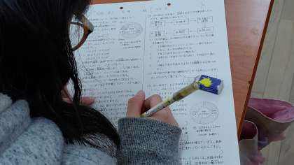 3時間目、5年生が社会科の学習をしていました。「林業についてのテスト」をしています。