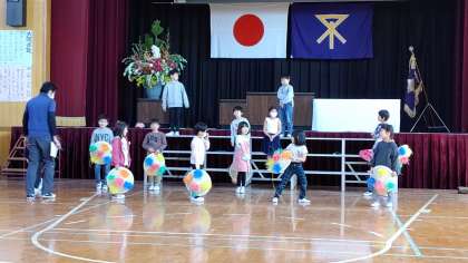 2時間目、1年生が講堂で、入学式に新入生の前で披露する演技を練習していました。わ