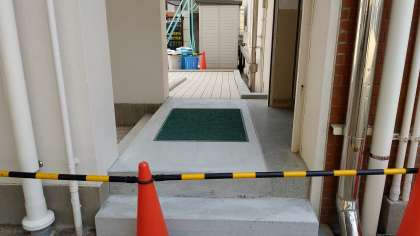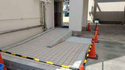 玄関横のフェンスの改修が終わりました。東側1階階段にスロープがつきました。各教室の蛍光灯をLED電球に付け替えています。