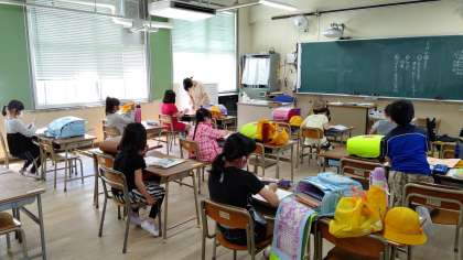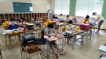 後半のグループの子どもたちが、休業中の課題の確認をしていました。