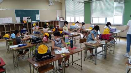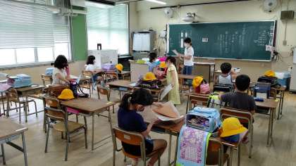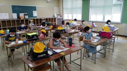 後半のグループが登校しています。