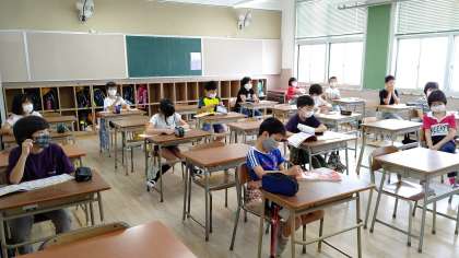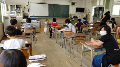 1時間目、4年生が国語の学習をしていました。漢字ドリルをしていました。
