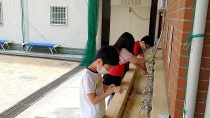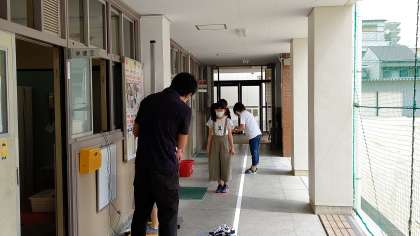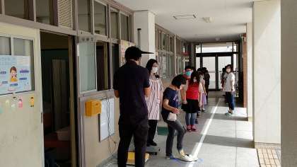 2時間目、5年生が保健室前で、発育測定をしていました。