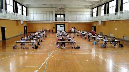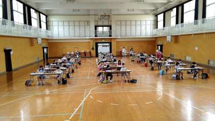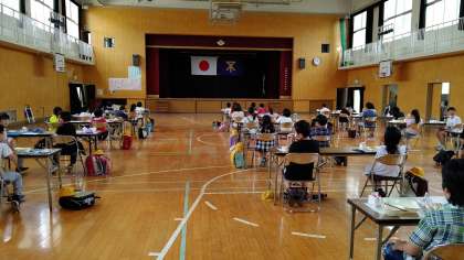 4年生から6年生までは、講堂で一斉に食べています。静かに食べています。