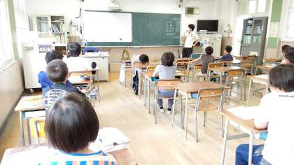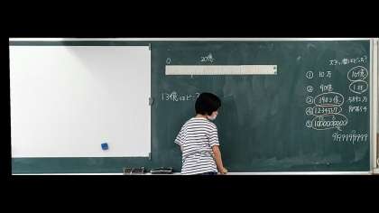1時間目、4年生が算数の学習をしています。「大きい数はどっち」という問題を考えています。