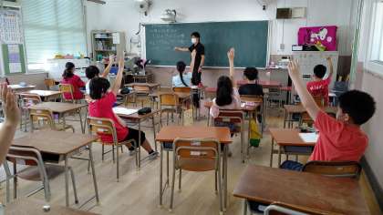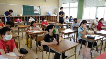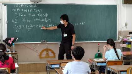 2時間目、5年生が算数の学習をしています。「整数と小数のしくみ」を学習しています。