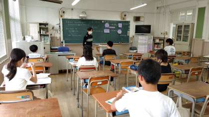 2時間目、6年生が算数の学習をしています。「線対称な図形」を学習しています。