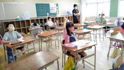 1時間目、5年生が算数の学習をしていました。「小数のかけ算」を学習しています。
