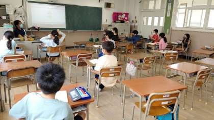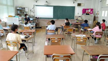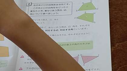 1時間目、5年生が算数の学習をしています。「合同な図形」を学習していました。