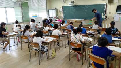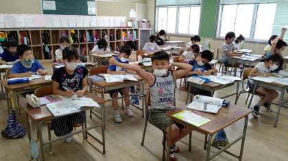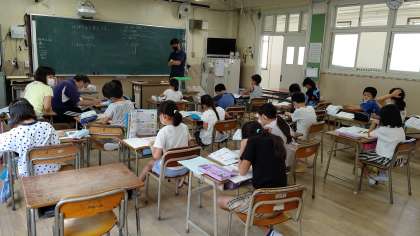 1時間目、3年生が理科の学習をしています。「マリーゴールド」の観察記録を書いています。