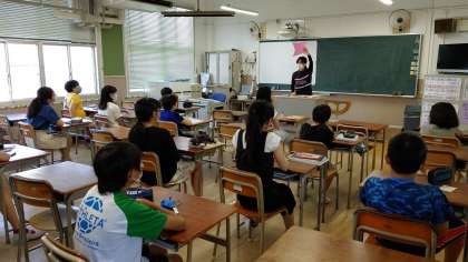 1時間目、6年生が算数の学習をしていました。「点対称な図形」について学習しています。