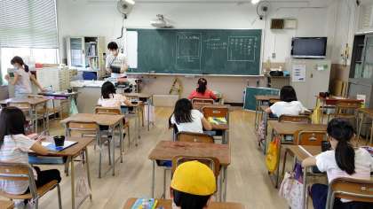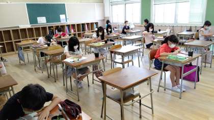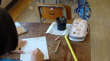 1時間目、4年生が理科の学習をしています。「ヘチマの観察記録」を書いています。
