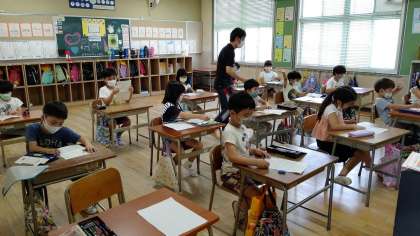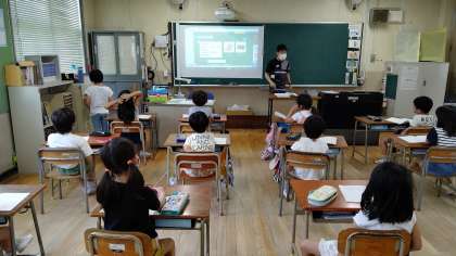1時間目、2年生が算数の学習をしています。「二けたの足し算」を学習しています。