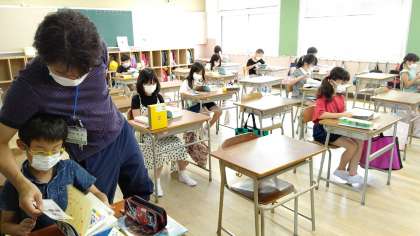 2時間目、4年生が国語の学習をしています。「漢字辞典の使い方」を学習しています。