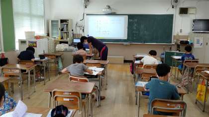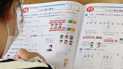 1時間目、4年生が算数の学習をしています。「わり算の筆算」を学習しています。