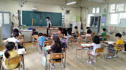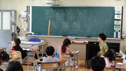 1時間目、2年生が算数の学習をしています。「足し算」を学習しています。
