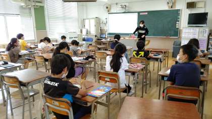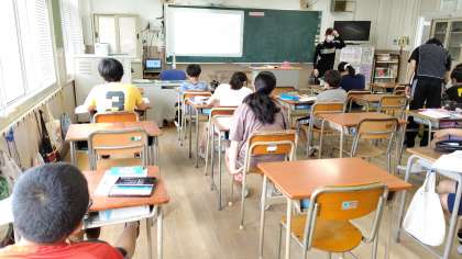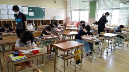 2時間目、6年生が算数の学習をしています。「点対称な図形」について学習しています。