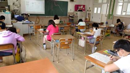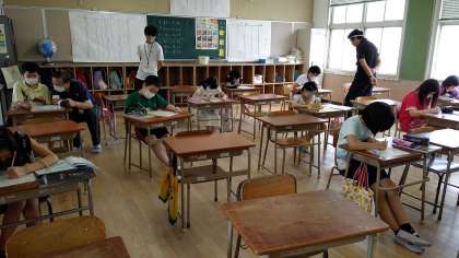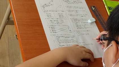 1時間目、5年生が社会科の学習をしています。「地形」について学習しています。