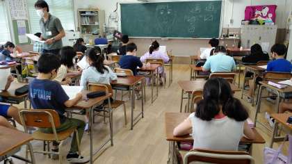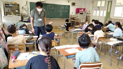 2時間目、5年生が国語の学習をしています。漢字練習と「動物たちが教えてくれる海の中のくらし」を読んでいます。