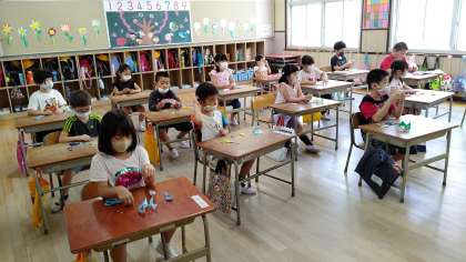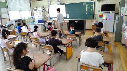 3時間目、1年生が図工の学習をしています。