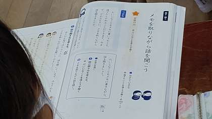 1時間目、3年生が国語の学習をしています。「メモを取りながら話を聞こう」の単元を学習しています。