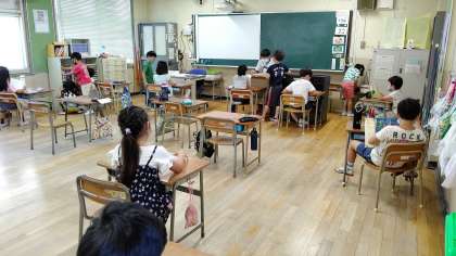 1時間目、2年生が国語の学習をしています。「漢字テスト」をしています。