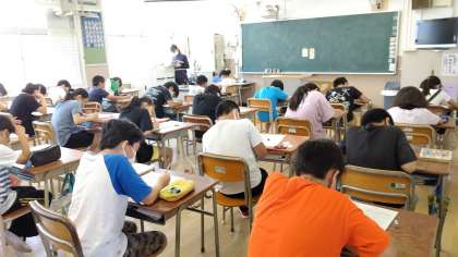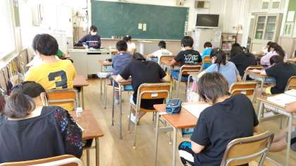 3時間目、6年生が社会科の学習をしています。今まで、学習した内容のテストに取り組んでいます。
