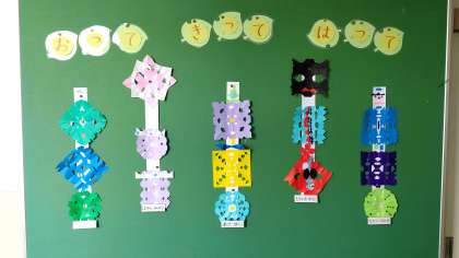 1年生教室の廊下がわ掲示板に、作品が展示されていました。