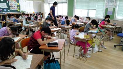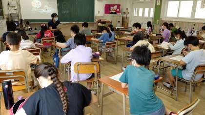2時間目、5年生が国語の学習をしています。「今まで学習した内容」のテストをしています。